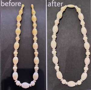 経年で小キズがついて、つやがなくなってしまったサンゴを磨きました。 丁寧に磨く事でつやが出て、白く粉