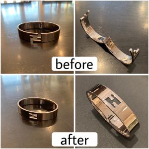バングルの修理 2025/03/31 バネが弱くなってしまい、カパカパとなって閉まらなくなってしまったバングルを修理しました。 長く使って消耗してしまった部分をしっかりと直してあげれば、また使えるようになります。 バングルも修理できますので、是非お持ちください⭐︎
