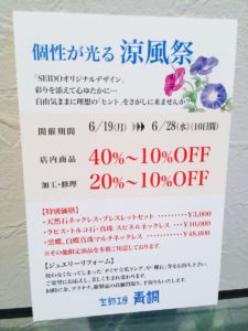 毎年恒例の吉祥寺店セール、涼風祭を開催いたします。 期間 6月19日(月)〜 6月28日