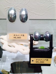 まだまだ蒸し暑い夏にはオスメニア貝のイヤリングがピッタリです♪なんとも言えない淡い色と貝のテリが、涼