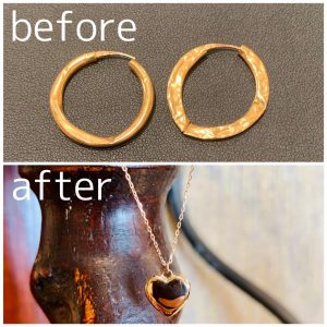 k18ピアスを溶かして、ペンダントヘッドに作り直ししました。 思い出の品なのに壊れてしまい、直す事も